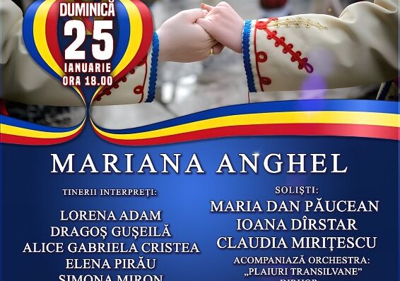 în data de 25 ianuarie 2026, începând cu ora 18.00. Spectacolul ,,PRIN CÂNT ȘI JOC CINSTIM UNIREA” se bucură de prezența specială a Marianei Anghel, o artistă apreciată pentru vocea
