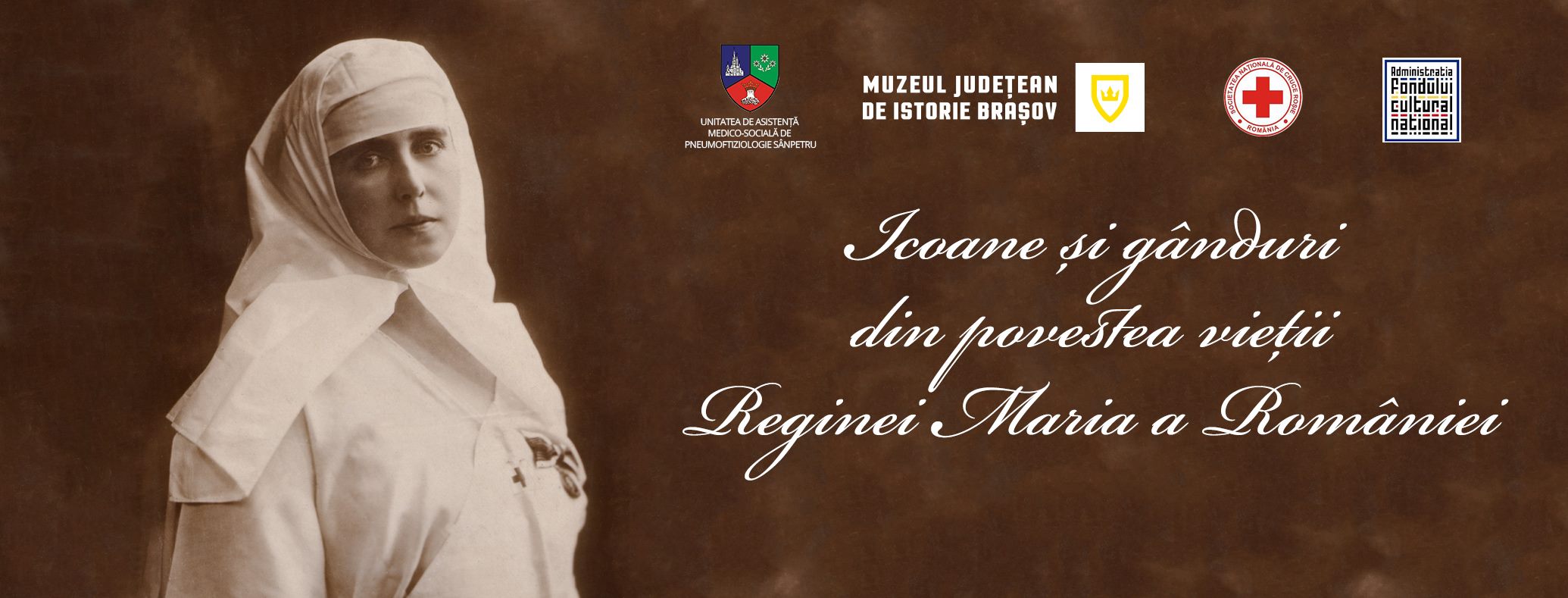 Unitatea de Asistenţă Medico-Socială de Pneumoftiziologie Sânpetru, împreună cu Muzeul Județean de Istorie Brașov, Crucea Roșie Brașov și Centrul Cultural Reduta vă invită miercuri, 25 octombrie 2017, orele 18.00, la piesa de teatru „Icoane și gânduri din povestea vieții Reginei Maria a României”.