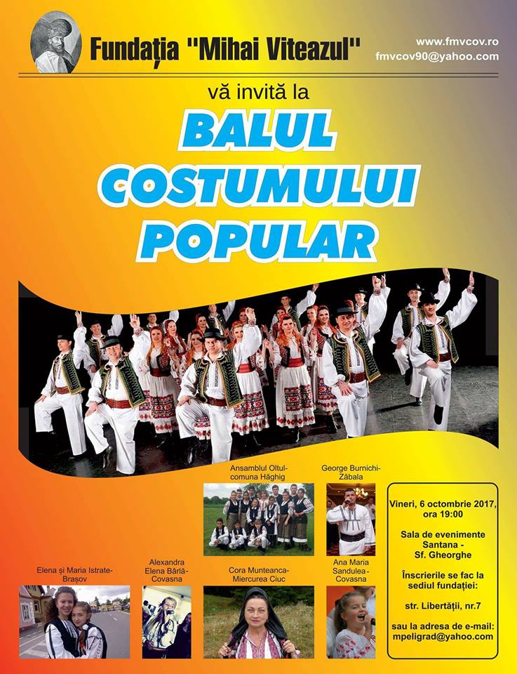 Balul Costumului Popular – editia a III-a, va avea loc, la Sfântu Gheorghe, la începutul lunii octombrie pe data de 06 la sala de evenimente Santana. Evenimentul este organizat de Fundația „Mihai Viteazul” din municipiu.