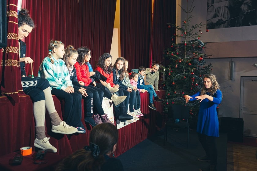 Pornind de la 4 tablouri: litosfera, biosfera, hidrosfera și atmosfera, copiii au aflat despre fiecare în parte în 3 etape: descrierea mediului, amenințările în contextul actual și potențiale soluții pentru a proteja aceste sfere. Apoi participații au explorat corporal imaginile din tablouri, dar și cele pe care le-au adus în discuție și au întrupat diverse elemente din natură: flori și fluturi care zboară printre acestea, straturi de litosferă care se mișcă în slow-motion, animale vesele și animale în pericol, valuri etc.