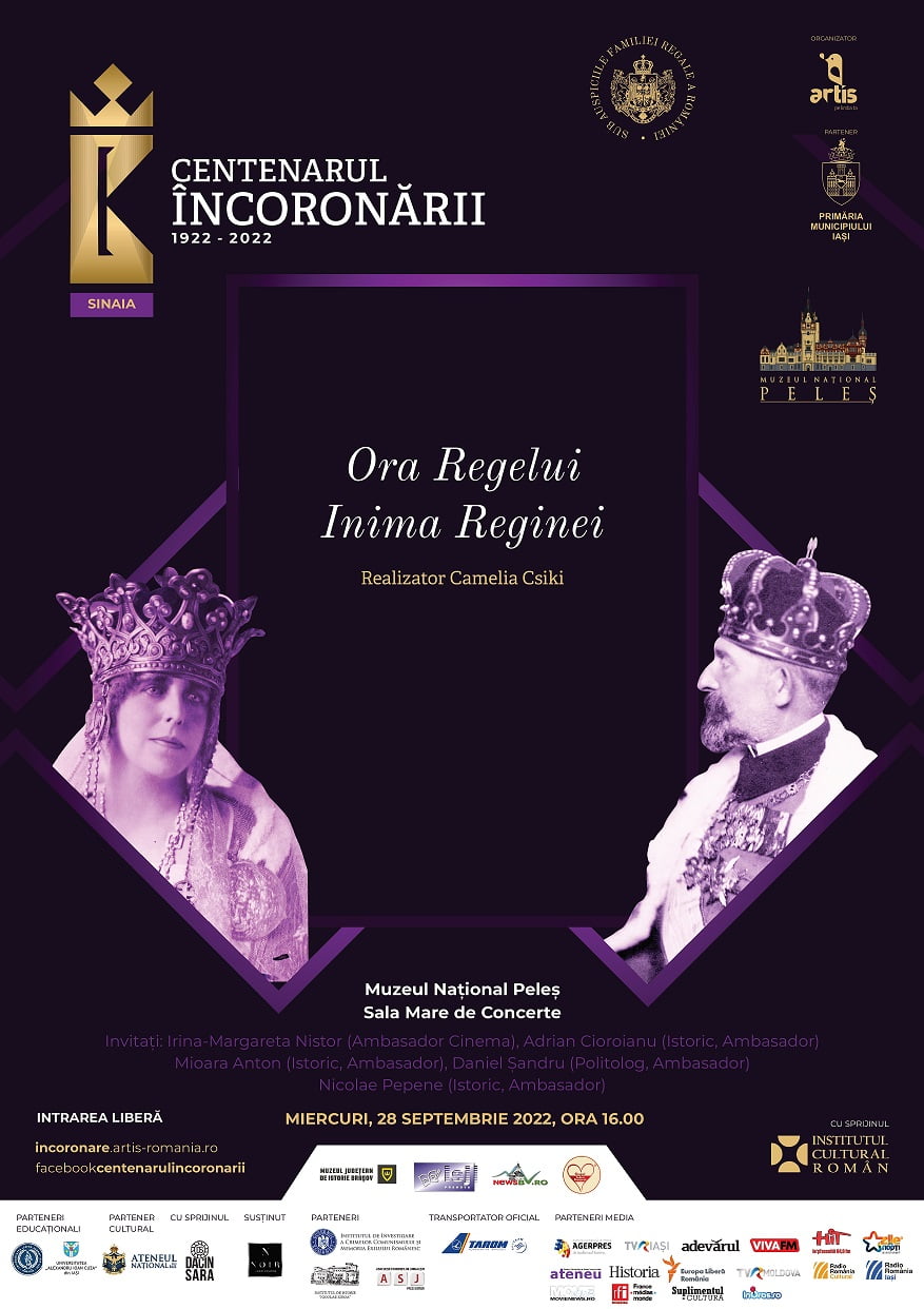 Caravana Centenarul Încoronării Regelui Ferdinand I și a Reginei Maria, inițiată de Asociația Artis din Iași, va ajunge pe 28 și 29 septembrie 2022 la Brașov și Sinaia, cu o serie de evenimente în prezența ambasadorilor proiectului. Activitățile desfășurate vor avea loc în contextul vizitelor Familiei Regale de la Brașov și Sinaia din primăvara anului 1919, iar publicul va putea descoperi istoria într-un alt mod – prin filme, expoziții de fotografie și discuții.