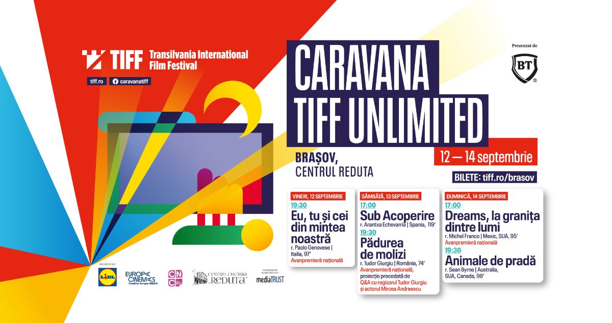 Caravana TIFF Unlimited ajunge la Brașov între 12 și 14 septembrie, transformând Centrul Cultural Reduta într-un punct de întâlnire pentru cinefilii dornici să vadă, în avanpremieră națională, unele dintre cele mai așteptate filme ale toamnei.