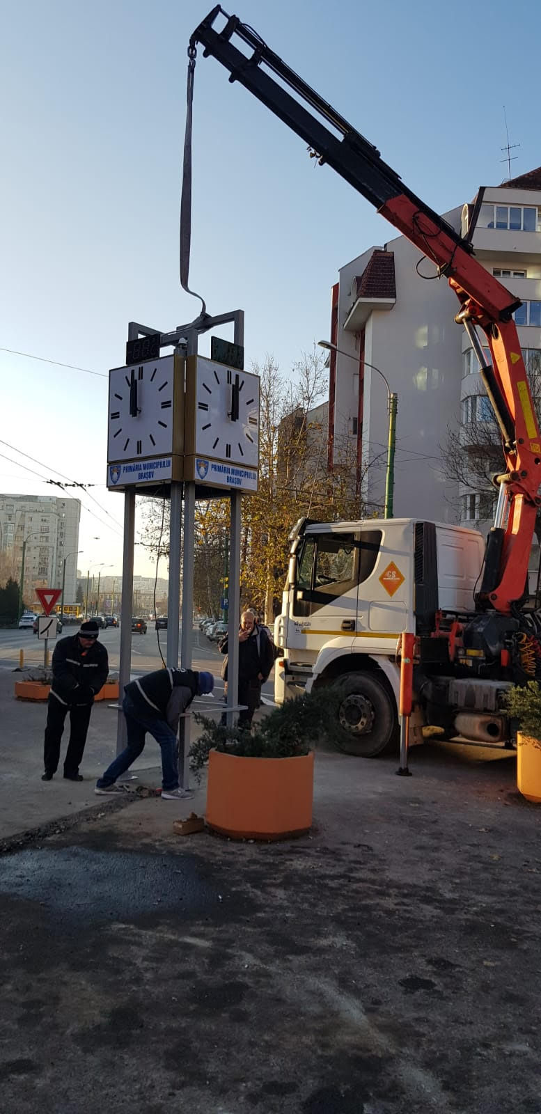 Intersecția străzilor Toamnei, Mihail Kogălniceanu și Hărmanului are de vineri un ceas stradal cu reglare automată, prin GPS. Ceasul a fost montat pe insula de la trecerea de pietoni, la o înălțime de cinci metri.