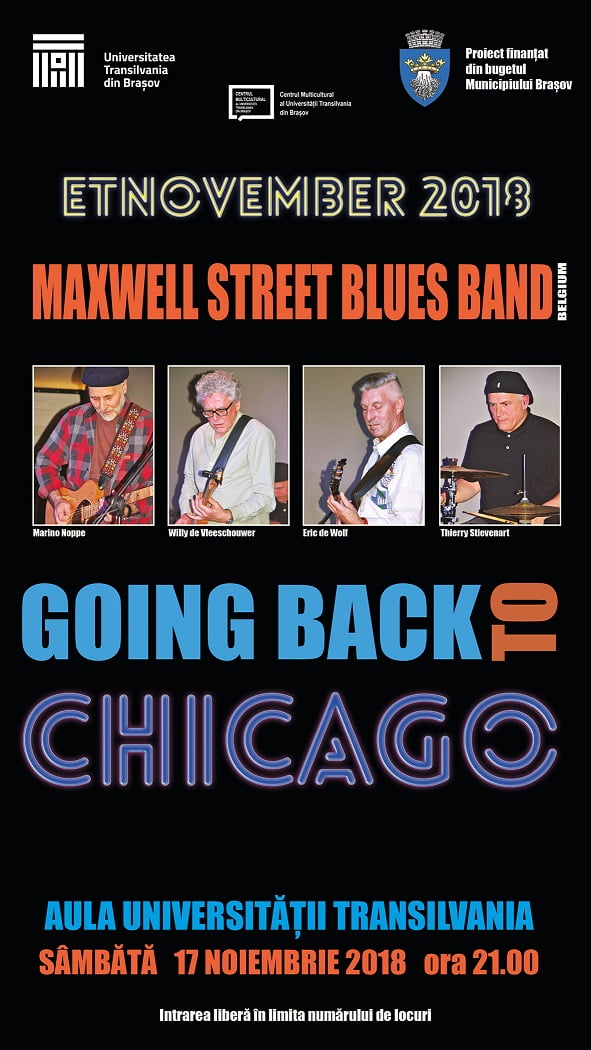 Concert de blues sâmbătă, 17 noiembrie ora 21.00, Aula Universității Transilvania. Going Back to Chicago, cu Maxwell Street Blues Band (Belgia)