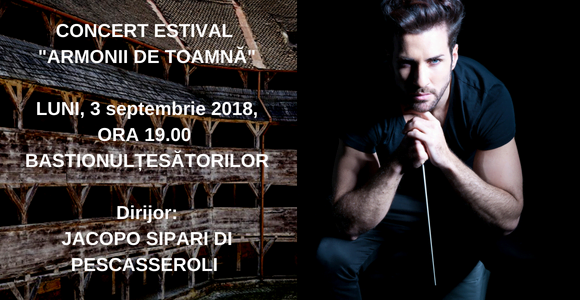 Artiștii Filarmonicii vor oferi o frumoasă surpriză muzicală melomanilor brașoveni și nu numai, urmând a avea loc Concertul Estival „Armonii de Toamnă”, susținut de Orchestra Simfonică brașoveană sub bagheta dirijorului italian Jacopo Sipari Di Pescasseroli.