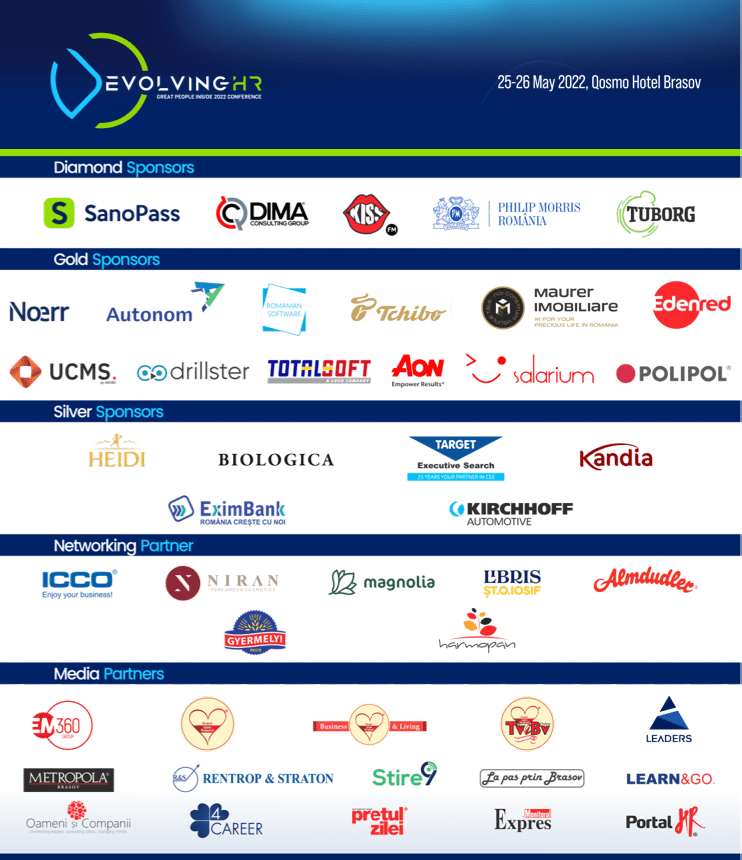 Toate aceste subiecte, dar și multe altele, au fost dezbătute în cadrul Conferinței Great People Inside „Evolving HR” ce a avut loc în perioada 25-26 mai 2022 la Qosmo Hotel, Brașov.