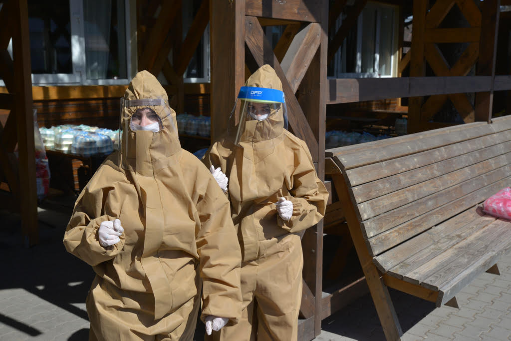 După ce își ajută colegii să descarce alimentele, încep pregătirea pentru a intra în aceste centre. Sunt atente la fiecare detaliu, mai ales că o greșeală le poate schimba statul din voluntar, în persoană infectată. Pe lângă mănuși și măști, își iau combinezonul, ochelarii și vizierele.