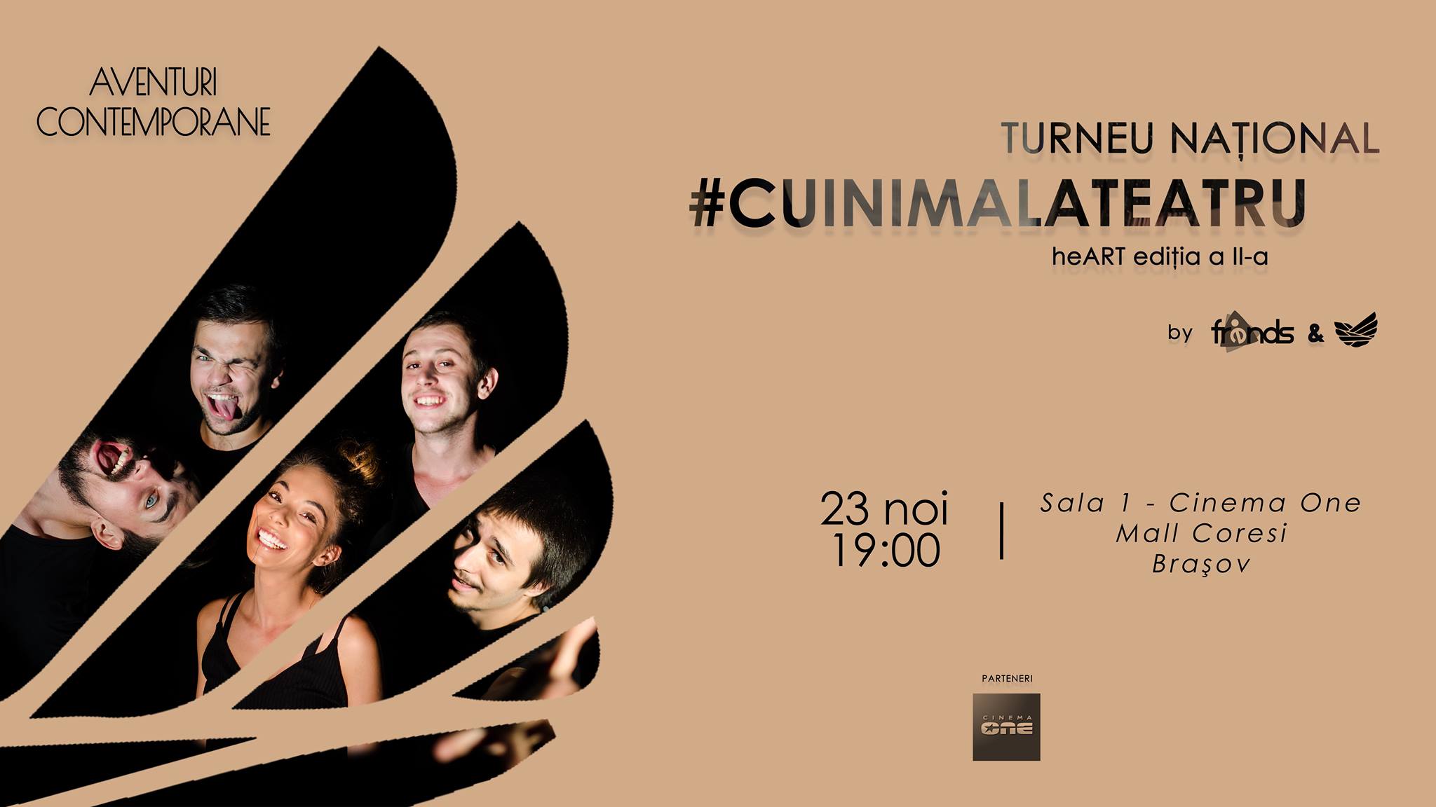 Credem că emoția ne face inimile să vibreze și, de aceea, vă invităm să veniți alături de noi #cuinimalateatru, în cea de-a doua ediție a turneului național heART. Planul este simplu: timp de două săptămâni cutreierăm țara în formă de inimă și, din dragoste pentru teatru, vă dăruim emoție, în atmosfera Cuibului Artiștilor.