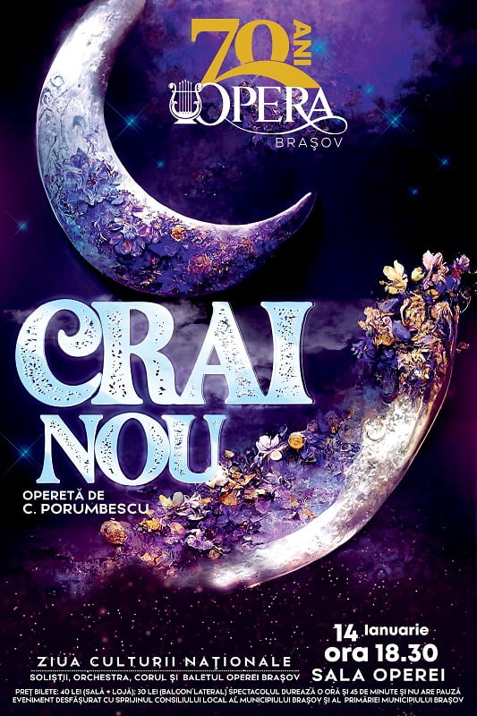 Sâmbătă, 14 ianuarie 2023, de la ora 18.30, la Opera Brașov, sărbătorim Ziua Culturii Naționale cu un spectacol românesc: opereta „Crai Nou” de Ciprian Porumbescu.