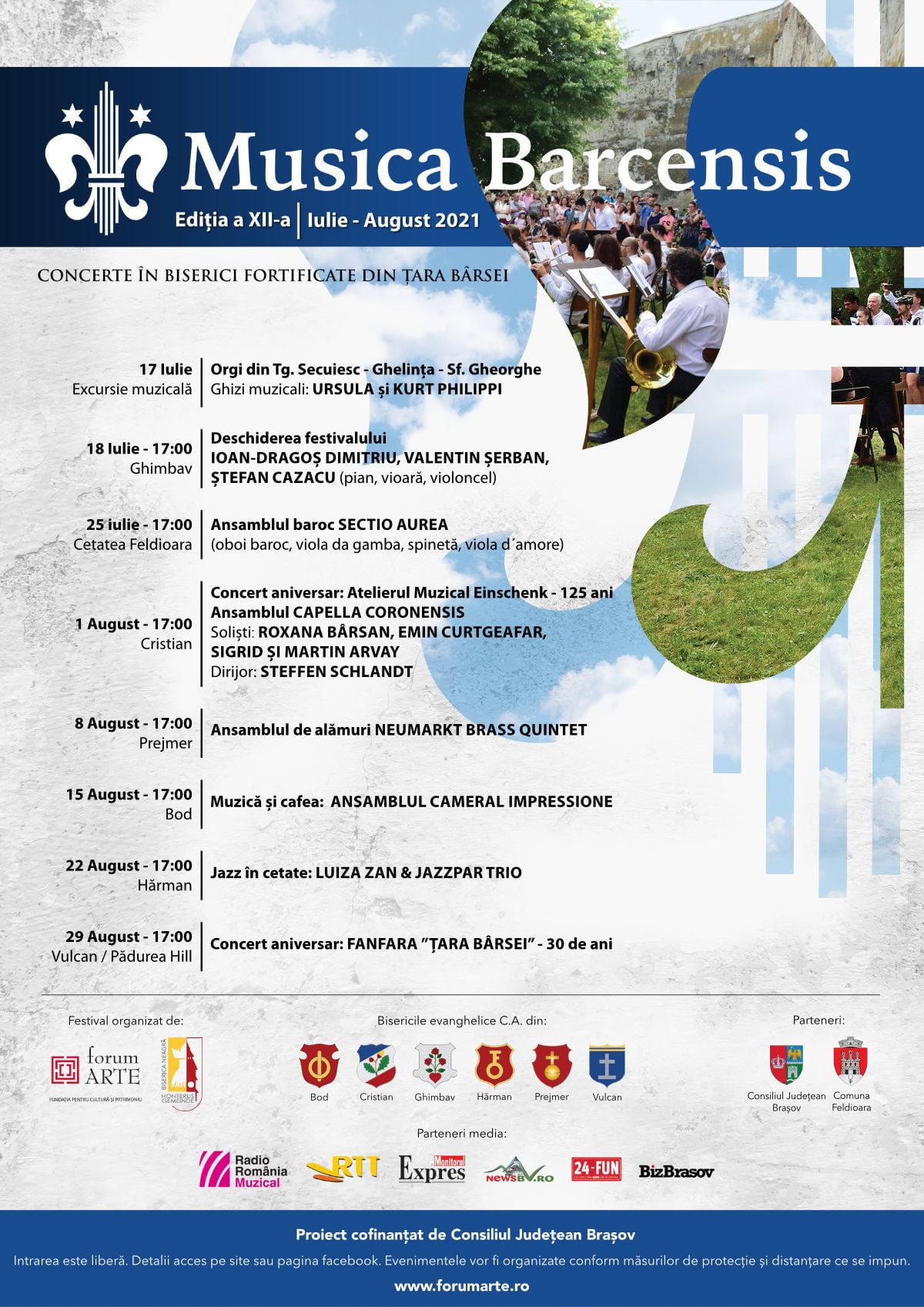 Festivalul Musica Barcensis 2021 este organizat de Fundația Forum ARTE în parteneriat cu Biserica Evanghelică C.A. România – Parohia Brașov și Bisericile Evanghelice din Bod, Cristian, Ghimbav, Hărman, Prejmer, Vulcan și primăria comunei Feldioara.