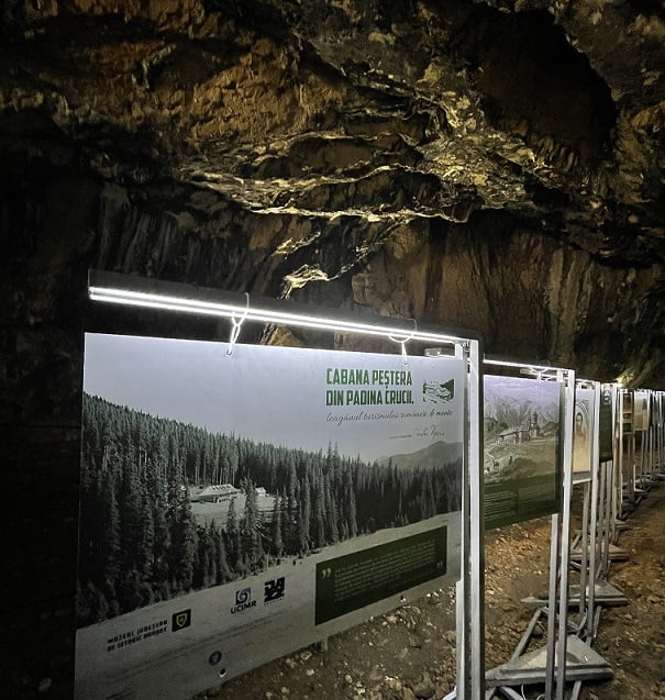 Expoziția amenajată în Peștera Ialomiței reunește în premieră secvențe importante, sub formă de gravuri, fotografii și texte, despre începuturile turismului montan în Munții Bucegi, cu o atenție specială pentru Cabana Peștera din Padina Crucii.
