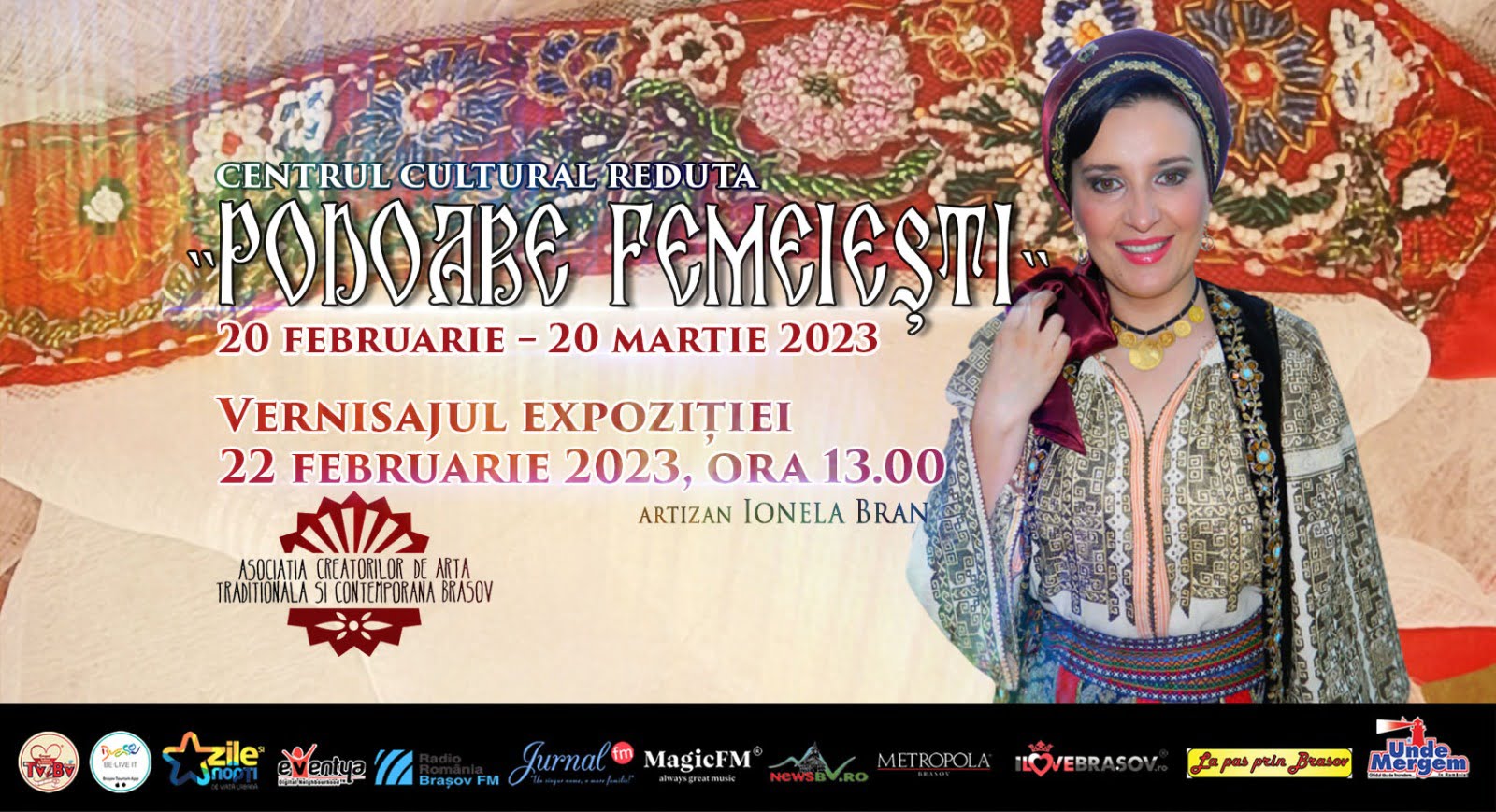 Centrul Cultural Reduta în parteneriat cu Asociația Creatorilor de Artă Tradițională și Contemporană din Brașov vă invită la Vernisajul Expoziției PODOABE FEMEIEȘTI – artizan Ionela Bran în 22 februarie, la ora 13.00 în foaierul Centrului Cultural Reduta. Expoziția va fi deschisă în perioada 20 februarie – 20 martie 2023.