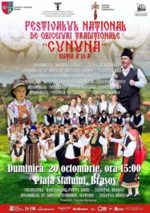Serviciul Cultură Tradiţională din cadrul Centrului Cultural „Reduta” vă invită duminică, 20 octombrie 2019, începând cu ora 15:00, în Piaţa Sfatului Brașov, la cea de-a IV-a ediţie a Festivalului Naţional de Obiceiuri Tradiţionale „Cununa”.