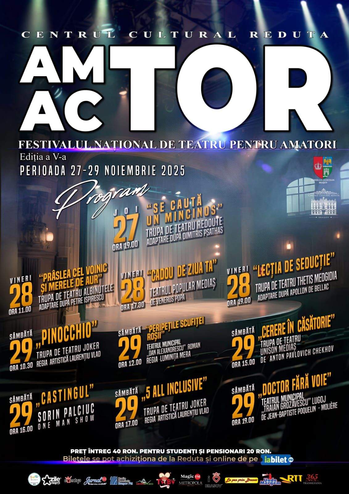 Festivalul Național de Teatru pentru Amatori „AM-ACTOR” revine la Brașov cu ediția a V-a în perioada 27–29 noiembrie 2025 aducând la un loc trupe din întreaga țară și celebrarea autenticității teatrului făcut din pasiune.