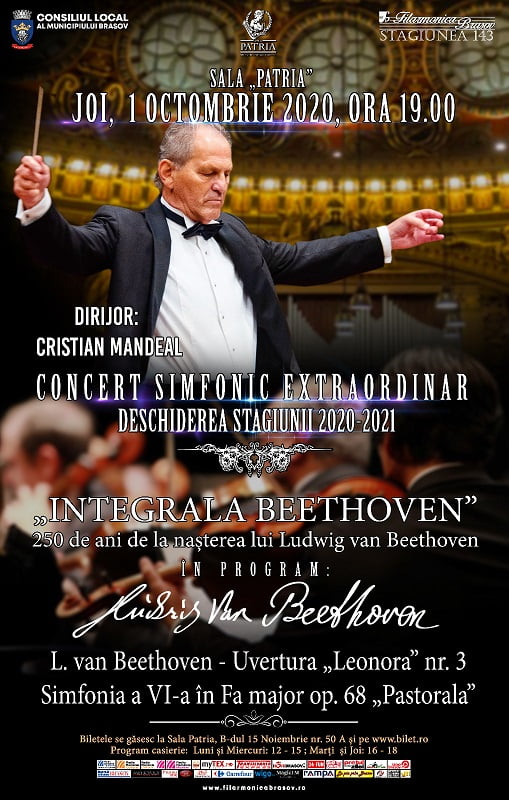 Stagiunea 143 va debuta cu un concert simfonic „INTEGRALA BEETHOVEN”- 250 de ani de la nașterea lui Ludwig van Beethoven, sub bagheta maestrului CRISTIAN MANDEAL, unul dintre cei mai apreciati dirijori ai momentului, din România dar și din întreaga lume.