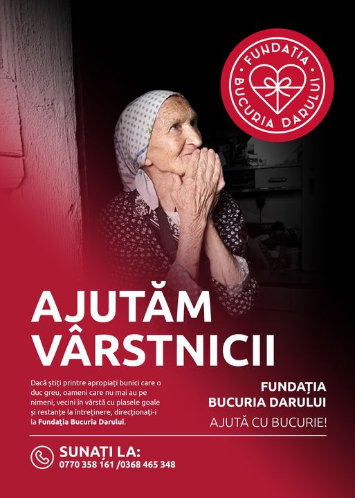 De aceea facem un apel către dumneavoastră: dacă știți printre apropiați bunici care o duc greu, oameni care nu mai au pe nimeni, vecini în vârstă cu plasele goale și restanțe la întreținere, să îi direcționați către Fundaţia Bucuria Darului.