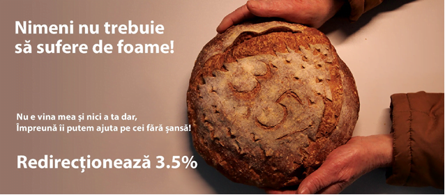 Fundația Bucuria Darului: „Nimeni nu trebuie să sufere de foame!” Redirecționează 3,5% din impozitul pe venit