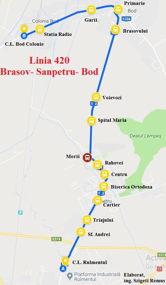 - linia 420 – Brașov – Sânpetru – Bod.