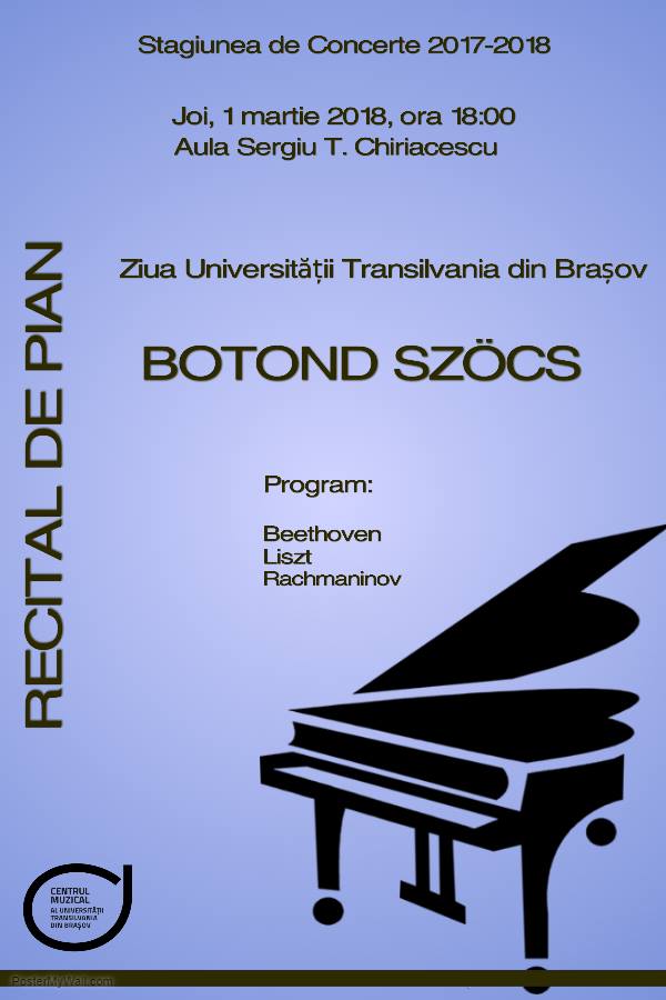 – Recital de pian – Botond Szöcs – joi, 1 martie, ora 18, Aula Sergiu T. Chiriacescu;