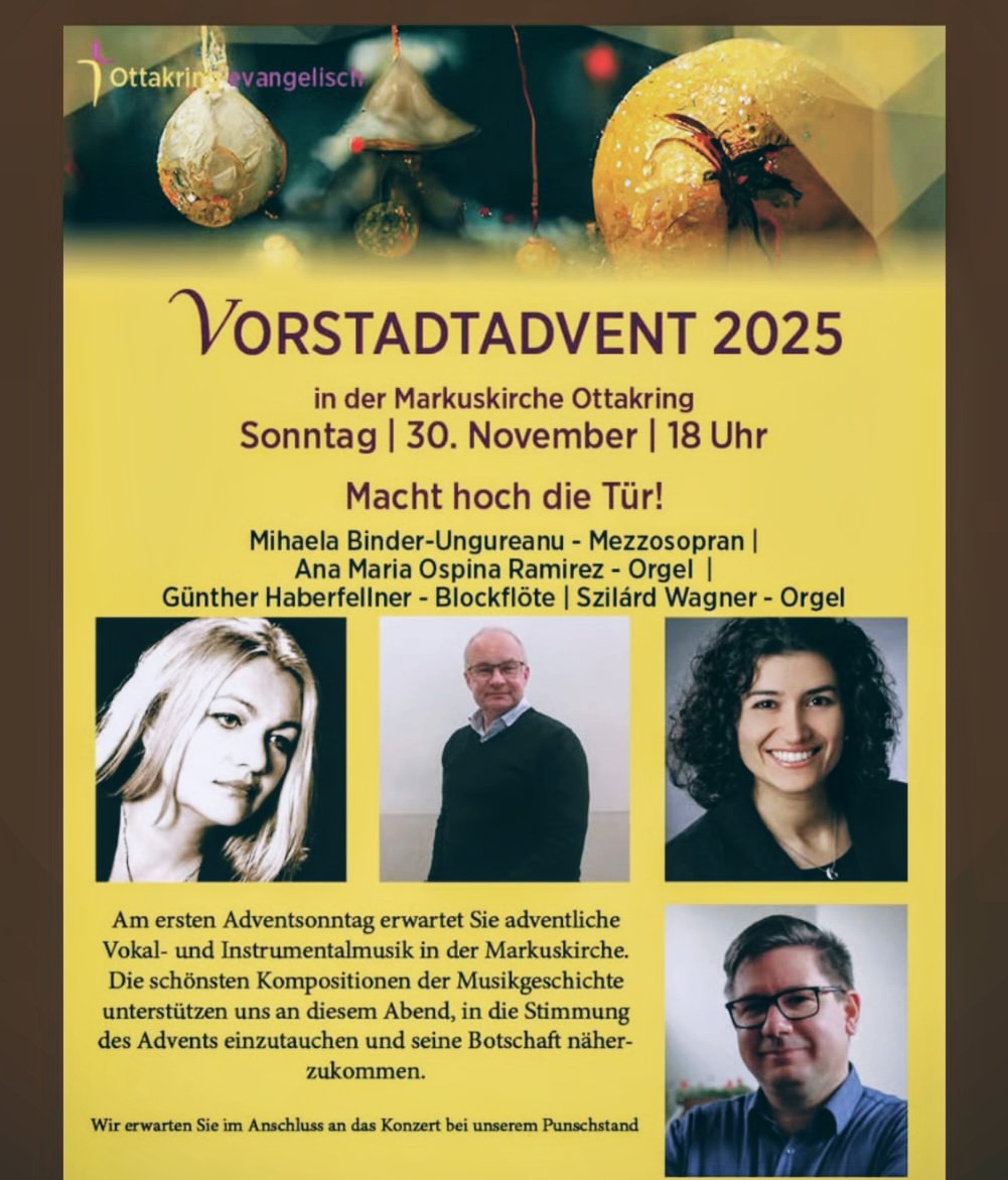 Evenimentul are loc pe 30.11.2025 la biserica evanghelica din Ottakring – Viena,la ora 18:00.