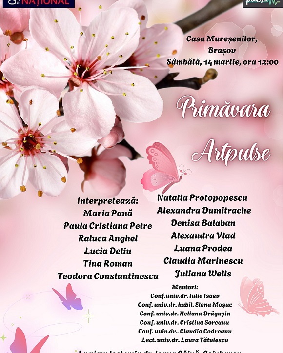 Vă invităm la concertul „Primăvara Artpulse”, un eveniment dedicat renașterii, luminii și emoției pe care doar muzica le poate aduce! Sâmbată, 14 martie ora 12.00, într-un cadru plin de farmec, la Casa Mureșenilor din Brașov, vă ateaptă un concert special cu arii, duete și lieduri dintre cele mai îndrăgite și rafinate.