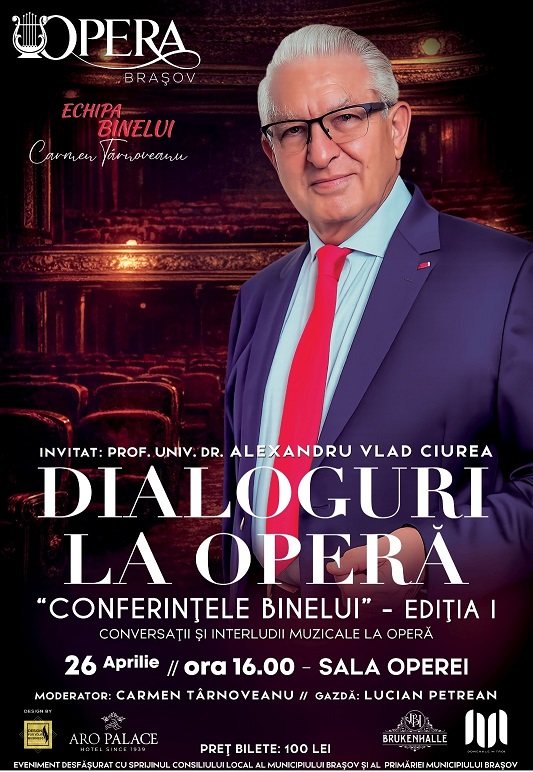 Începând cu luna aprilie, Opera Brașov lansează un nou proiect cultural realizat în parteneriat cu „Echipa Binelui”, inițiativă fondată de Carmen Târnoveanu. Sub titulatura „Dialoguri la Operă – Conferințele Binelui”, această serie de întâlniri își propune să aducă în fața publicului personalități marcante din diverse domenii, oameni ale căror idei, experiențe și valori pot inspira reflecția asupra rolului binelui în societate.