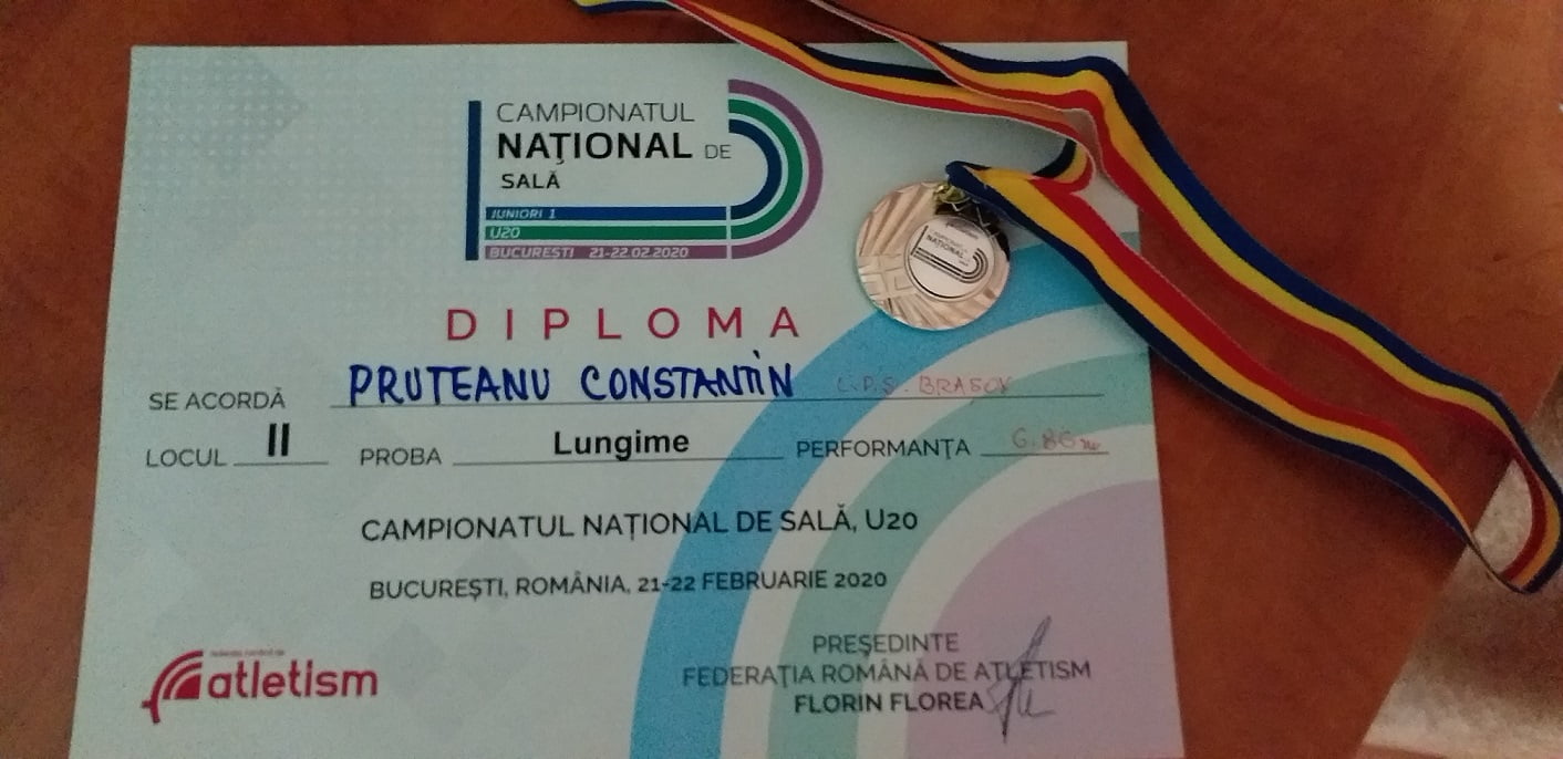 La proba de săritură în lungime, elevul nostru a obținut locul II și medalia de argint, devenind vicecampion național, cu performanța de 6,86 m. De remarcat faptul că această performanță reprezintă un progres imens față de cea mai bună performanță a sa care era de 6,59 m.