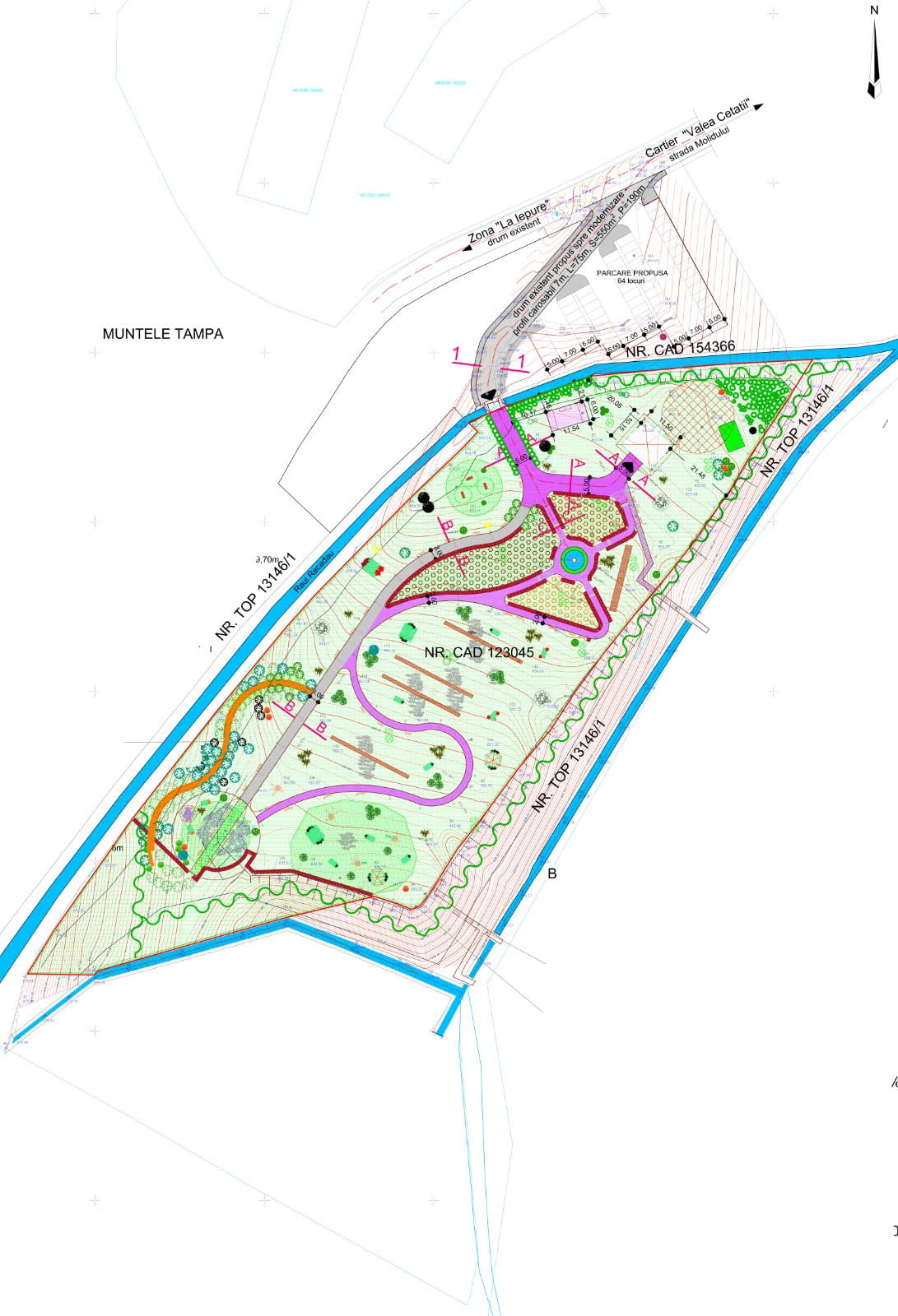 De asemenea, este asigurat accesul persoanelor cu dizabilități la toate amenajările din parc, fiind prevăzută și toaletă ecologică pentru acestea. Aleile din parc sunt suficient dimensionate pentru parcurgerea întregului traseu cu toate sinuozitățile propuse. Întrucât este necesară inserarea de-a lungul aleii principale a unor pachete de trepte care să preia din înălțime, astfel ca panta să nu fie foarte abruptă, este asigurat accesul la toate dotările cu ajutorul unei serpentine, care conduce, de asemenea, la belvedere.
