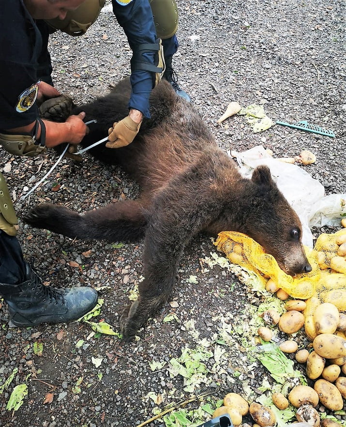Întrucât timp de aproximativ 2 ore nu s-a reușit îndepărtarea celor doi urși, s-a luat decizia tranchilizării lor, sub cooronarea unui medic veterinar, și ulterior mutării acestora în zona de pădure. După tranchilizare, Echipa de Intervenție Rapidă Specializată, însoțită de echipajul de jandarmi, a mutat urșii pe același fond forestier, la o distanță de aproximativ 10 km în pădure, în zona Babarunca, pe drumul forestier Valea Tărlungul Mare – Ciocuri.