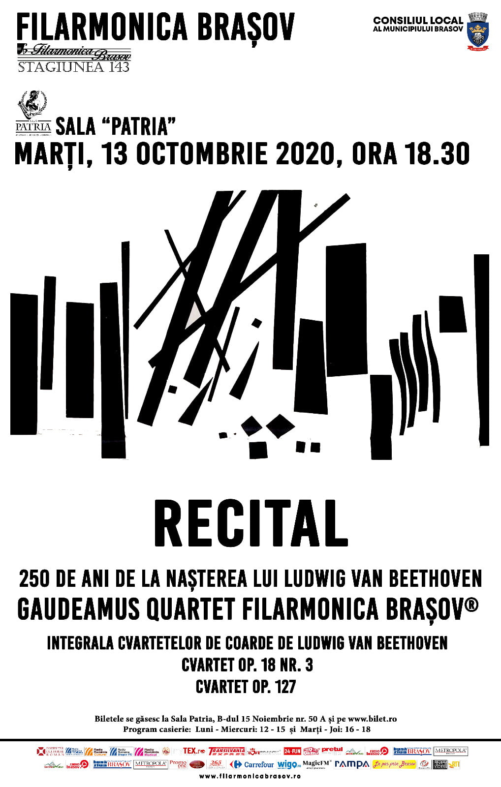 Astfel, sărbătorirea celor 250 de ani de la nașterea lui Ludwig van Beethoven aduce în fața auditoriului marți 13 octombrie, de la ora 18.30, la Sala mică Patria, Integrala cvartetelor de coarde de Ludwig van Beethoven – Cvartet op. 18 nr. 3 și Cvartet op. 127, în interpretarea celor patru muzicieni, interpretare recunoscută prin stilistica camerală autonomă bazată pe continuitate și particularizarea limbajului, precum și obținerea unor forme concordante cu propunerea conținutului din dorința de a reda un estetic sonor elegant și rafinat.