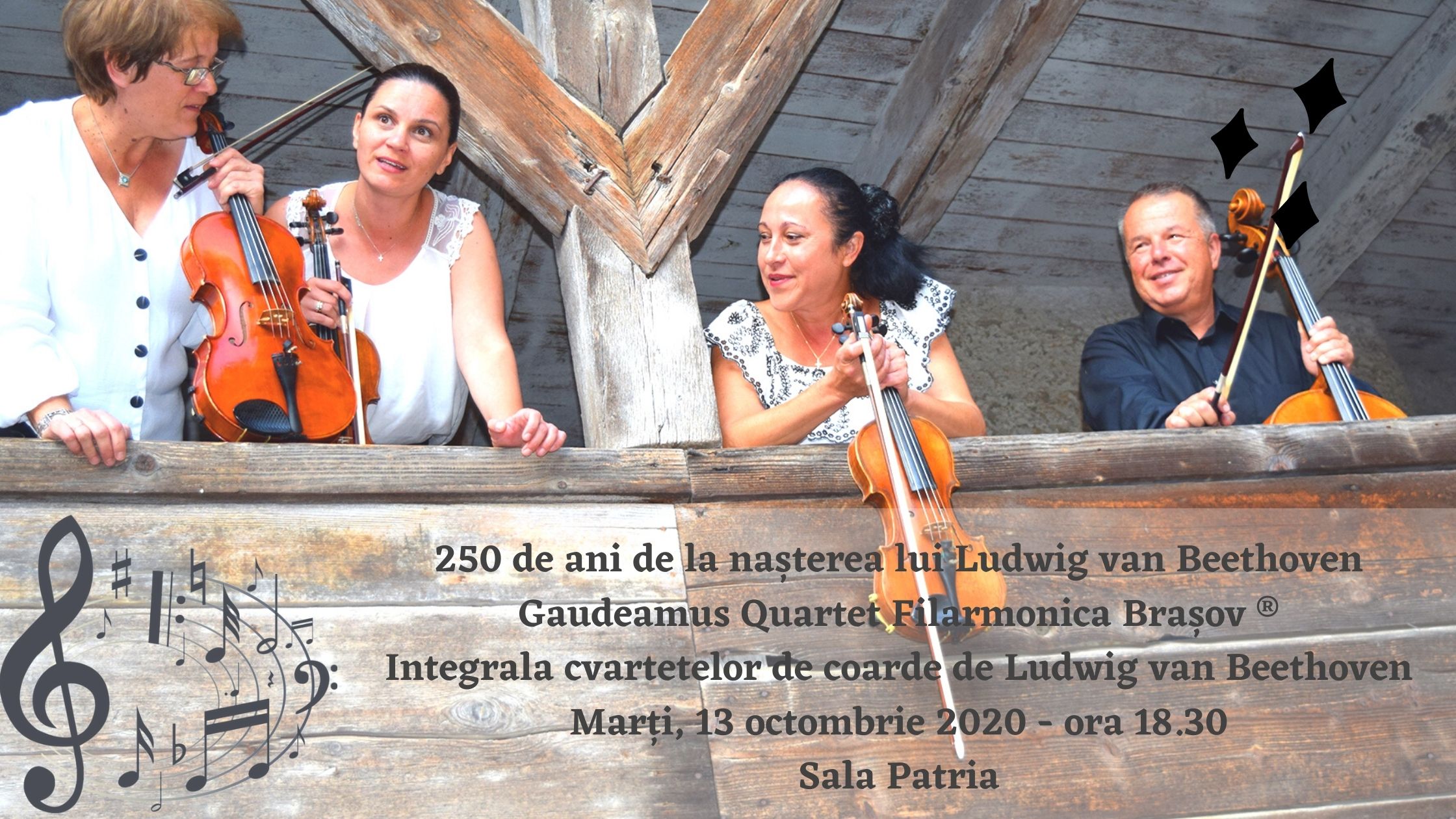 Un moment muzical cameral dedicat lui Ludwig van Beethoven, susținut de cei patru muzicieni ce formează la acest moment Gaudeamus Quartet Filarmonica Brașov ®: Lucia Neagioe – vioară I, Raluca Irimia Tonescu – vioară a II-a, Leona Vervarichi – violă și Stefan Neagoe – violoncel.