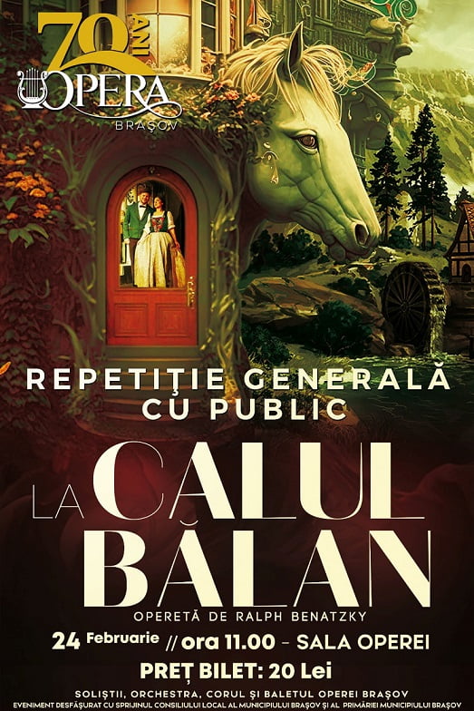 Cererea venită din partea publicului pentru spectacolele Operei Brașov este, în continuare, foarte ridicată, de aceea vineri, 24 februarie 2023, de la ora 11.00, în sala de pe str. Bisericii Române nr. 51, vă invităm la repetiția generală a operetei „La calul bălan” de R. Benatzky!