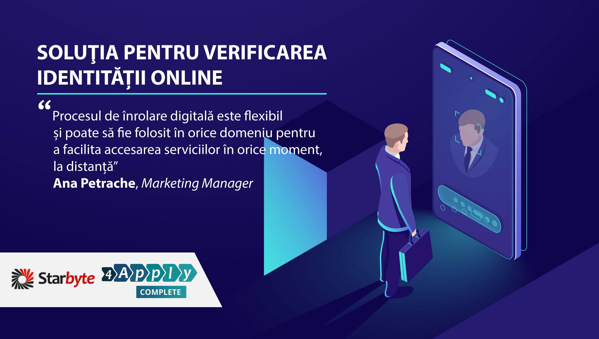„Instituțiile financiare trebuie să parcurgă o linie fină între respectarea reglementărilor, detectarea fraudelor, securitatea digitală, oferind în același timp o experiență plăcută clienților. Pe de altă parte, infractorii cibernetici sunt tot mai inovativi, reușind să exploateze lacunele și să păcălească formele tradiționale de identificare online. Soluția noastră ajută la întâmpinarea acestor provocări cu o experiență intuitivă de verificare a identității online, care descurajează utilizarea de identități și documente false. Procesul de înrolare digitală este flexibil și poate să fie folosit în orice domeniu pentru a facilita accesarea serviciilor în orice moment, la distanță” a declarat Ana Petrache, Marketing Manager Starbyte.