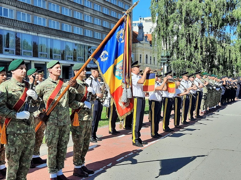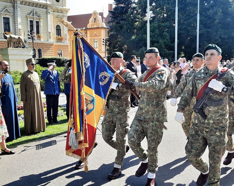 Muzica militară și asistența au interpretat Imnul Național al României, iar evenimentul s-a încheiat cu defilarea detașamentului de militari.